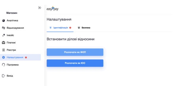 Після реєстрації в особистому кабінеті мерчанта, перед початком роботи, необхідно пройти процес ідентифікації.